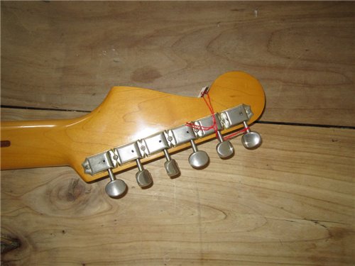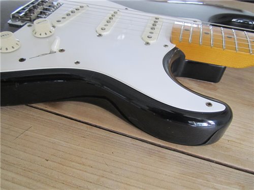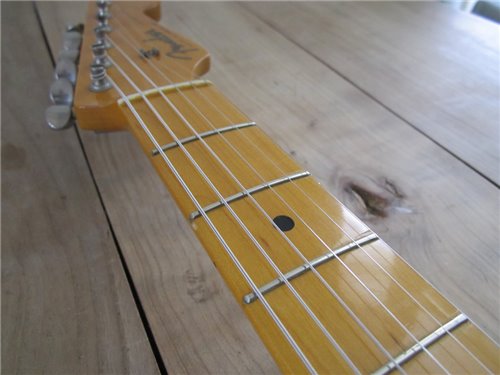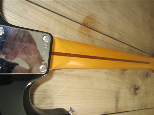 Eine weitere Fender ST57-65 JV mit 2 Fullerton Pickups und einem sehr passenden USA Cloth Wired aus den 80er Jahren. Diese Gitarre ist viel gespielt und gut gebraucht worden und wie das pre CBS 57er Vorbild gebaut. Die Gitarre hat am unteren Zargen Lackkorrekturen, alles andere ist tadellos. Ich versuche es in den Fotos zu zeigen. Technisch einwandfrei, eben eine JV und gerade wegen diesem Makel, der eigentlich keiner ist, gebe ich sie günstiger ab. Der Hals ist gut, das Griffbrett ebenso. Der Kleber, der auf die USA PU' s hinweisst, ist auch noch auf dem Pickguard. Ein hammer standard Werkzeug, für Gitarristen, die den alten Sound dieser Gitarren lieben und nicht ständig aufpassen wollen, denn sie hat schon Gebrauchtspuren. Habe nach dem Entdecken der JV Serien, keine besseren Strats mehr angetestet in mehr 30 Jahren und ich hatte des Berufes wegen, 100te Gitarren in den Händen. Die Gitarre ist eingeschwungen, sie vibriert was das Zeug hält, sie ist sehr leicht. Alles in allem, eine einwandfreie Gitarre für denjenigen, dem es egal ist oder der es sogar liebt, wenn sie die natürliche Alterserscheinung zeigt. Der Gitarrist, dem es rein nur auf den Sound ankommt, der findet hier die richtige Begleitung. Eine tolle alte Dame, die einen drauf hat. Sie hat den 3 Way Switch wie das Original. Die ST57-65 Gitarre haben alle Sammlerwert. Ich bekomme jetzt noch solche Gitarren und wer sich eine sichern will, muss noch zuschlagen, irgendwann hat es keine mehr oder sie kosten um einiges mehr. Wer verkauft sie schon weiter, wenn er "es" entdeckt hat.