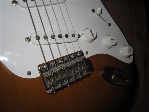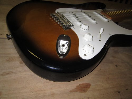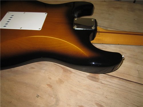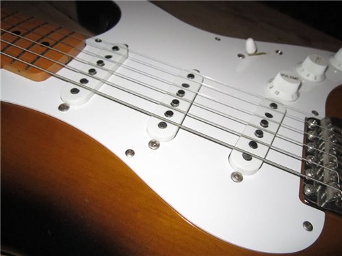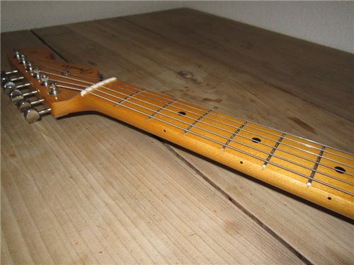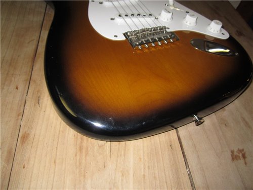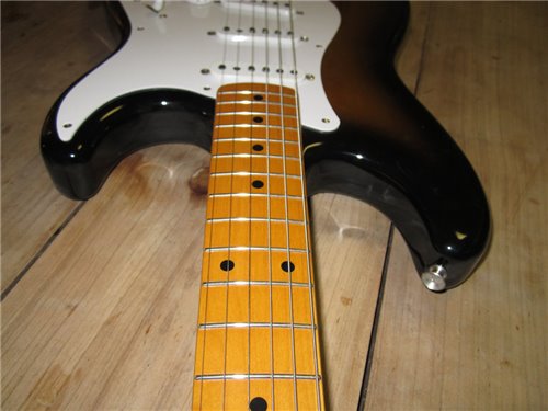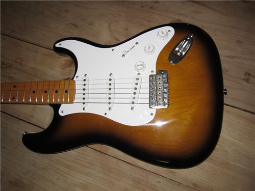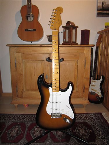 Eine Stratocaster ST57 in sehr gutem Zustand. Diese Gitarre hat Made in USA Alnico Vintage Pickups und eine Polyester-Lackierung. Sie hat den echt drahtigen, geilen Fender Stratocaster Sound, den man liebt. Die Gitarre ist in der gewohnten Fujigen Qualität und überzeugt schnell mal. Die Gitarre ist äusserst gut erhalten für ihr Alter. Eine echt gute Fender Gitarre zum guten Preis. Genau so müssen es sein, schöner Erle Korpus, USA PU, sauber verleimter Body und eben, dieser Strat - Sound, den man erwartet. Sie kann mit 3 und 4000.- Franken Gitarren verglichen werden, die den gleichen Namen tragen. Wer es nicht glaubt, der darf sich gerne überzeugen.