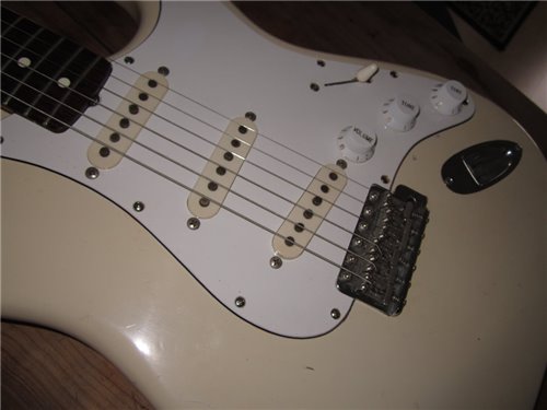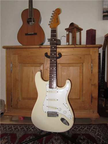 Eine JV Serie ST62-85 in technisch gutem Zustand. Die Gitarre wurde von Fujigen während den ersten 3 Monaten der MIJ Produktion hergestellt. Sie hat die Red Bobbin Pickup' s verbaut, welche enorm gut klingen. Die Gitarre ist viel gespielt worden, hat einige Dellen und Lackkratzer, sie ist jedoch technisch einwandfrei. Die Gitarre ist ein Hammer, so wie das die JV Gitarren einfach sind. Sehr warm, singend, glockend und drahtig im Sound. Der originale 3 Way Switch ist gegen einen 5 Way ausgetauscht worden. Natürlich steigen die Preise bei solchen Gitarren an und verlieren kann man somit nichts, im Gegenteil, man hat eine der besten Stratocaster und erst noch die Wertsteigerung. Was will man mehr?