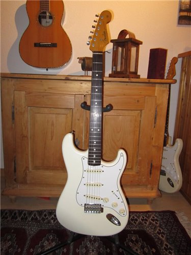 Und hier die Nummer zwei von meinen beiden JV ST62-85 in VWH. Die Gitarre wurde von Fujigen im Jahre 1983 hergestellt. Sie hat die Black Bobbin Pickup' s verbaut, welche enorm gut klingen. Die Gitarre ist in genial gutem Zustand und sie ist technisch einwandfrei. Die Gitarre ist natürlich ebenfalls ein Hammer, so wie das die JV Gitarren einfach sind. Sehr warm, singend, glockend und drahtig im Sound. Der originale 5 Way Switch wurde ab 1983 serienmässig eingebaut. Natürlich steigen die Preise bei solchen Gitarren an und verlieren kann man somit nichts, im Gegenteil, man hat eine der besten Stratocaster und erst noch die Wertsteigerung. Eine einwandfreie Gitarre, mit bestem Sound, ich gebe sie nicht gerne her, also sie ist nur zu diesem Preis zu haben, das sind einfach Wertanlagen und die sollte man nicht verscherbeln.