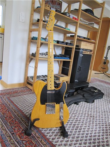 Eine neuere R-Serie Telecaster in ausgezeichnetem Zustand mit cloth wired Vintage Dimarzio PU. Spielt man sie, weiss man, dass die neuen Fender Made in Japan Gitarren den USA Instrumenten weit überlegen sind. Obwohl die Gitarre neueren Datums ist, überzeugt sie durch einen ausgezeichneten, typischen Telecaster-Twang Sound der nicht tot wirkt. Ich stelle mir vor, dass wenn die Gitarre in ihr Alter kommt, sie noch besser wird. Es ist das teuerste Modell, welches zur Zeit in Japan hergestellt wird in der Telecaster Modellreihe. Sie hat eine Nitrolackiereung, spezielle Vintage Tonabnehmer von DiMarzio verbaut bekommen und sie ist mit einem wunderschönen Esche Body versehen. Die Gitarren dürfen nach wie vor nicht als neue Instrumente exportiert werden, was ja nicht erstaunt bei dieser Qualität, wer würde da noch USA oder mexikanische Gitarren kaufen. Diese jedoch, ist eine gebrauchte Telecaster in neuwertigem Zustand und darum hat man die Gelegenheit, sie zu kaufen. Beim Kauf kann man einfach nichts falsch machen, denn sie überzeugt mit den besten Merkmalen, Punkt.