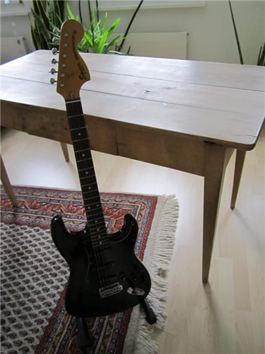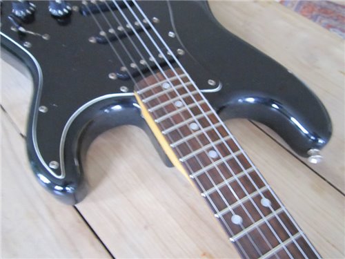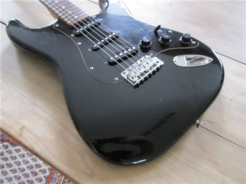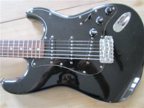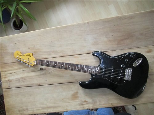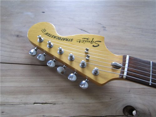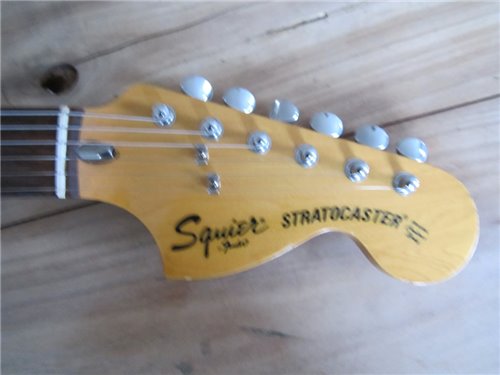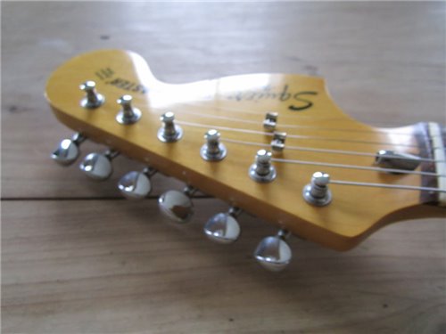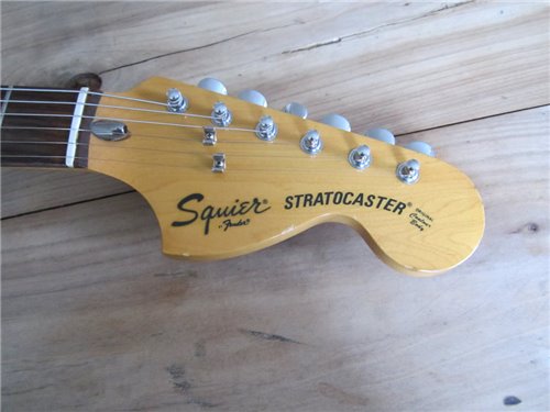 Squier im Fender CBS Style. Im Gegensatz zu der SST Serie, die die Squier Vintage Stratocaster beinhalteten, bedeutet CST "Curent Stratocaster" Serie. Es war die "laufende" Serie zu dieser Zeit, die auch von CBS in der USA gebaut wurden. Die von Fujigen gebauten Instrumente, wurden sehr genau nachgebaut. Die Gitarren, die von CBS produziert wurden, liessen sehr zu wünschen übrig. Im Gegensatz zu den CBS Gitarren, waren die von Fujigen gebauten Gitarren, genau gefräst bei den Halstaschen und auch die Pickups pfeifen nicht, was nämlich in dieser Zeit bei den USA Instrumenten der Fall. Also eine sehr gute 72er Stratocaster, in sehr präziser Ausführung, mit dem unverkennbaren Ton der 72er Stratocaster mit der grossen Kopfplatte.